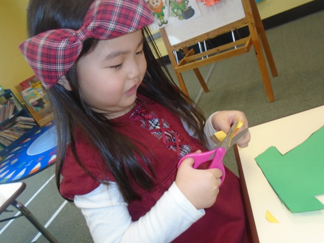緑色の画用紙を帽子の形に切って・・・